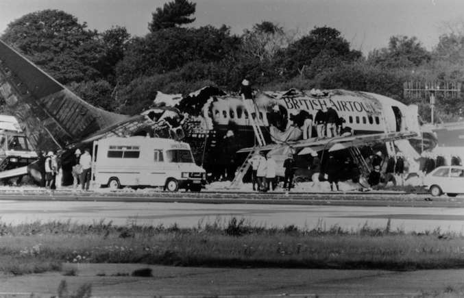 در سال ۱۳۶۴(۱۹۸۵) پرواز۳۲۸ شرکت هواپیمایی بریتیش ایرتورز هنگام برخاستن از باند فرودگاه دچار حریق شد که به دنبال آن ۵۵ نفر بخاطر استنشاق دود این آتش سوزی قربانی شدند.
