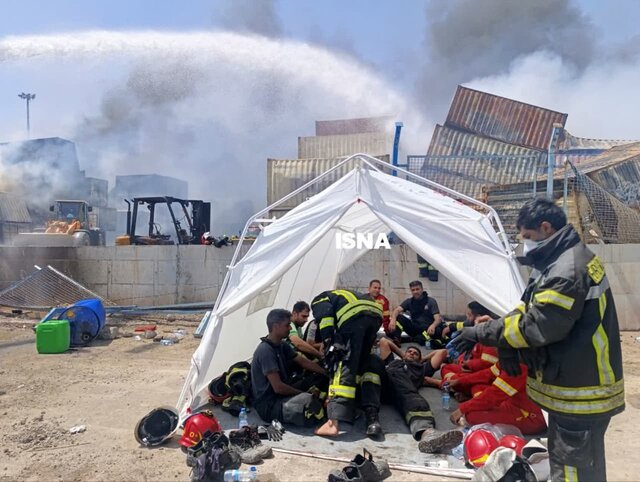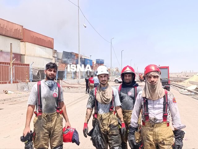 میان راه روهای سوخته اسکله کوچه پس کوچه های کانتینری گروه گروه آتش نشان هایی را می بینم که شیفت عوض کرده و خسته اما با لبخند به سوی خیمه گرم خود می روند تا دقایقی را استراحت کنند و با توان تازه به میدان جنگ آتش بروند.
